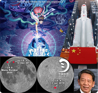 The 3rd heavy-lift Long March 5 (LM-5) rocket is scheduled to launch December 27 from China newest and most southern launch center at Wenchang, Hainan Island 19° N. Carrying 8,000-kg Shijian 20 tech demo satellite into geosynchronous orbit, it will be the first LM-5 flight in ~30 months. Success is critical for China 2020 commitments to launch its first lunar sample return mission Chang’e-5, first Mars mission Huǒxīng-1 (Mars-1) of a rover and orbiter July 23, conduct variant Long March 5B test, and fly next-gen human spacecraft. CE-5 is expected to launch NET July 2020 to Mons Rümker Region 40.8° N, 58.1° W and return to Earth within one month. Back-up CE-6 could launch to collect samples near Moon South Pole after CE-7 lands on Shackleton Rim NET 2023. CE-8 may be the final robotic mission before China lands humans on the Moon. 21st Century China / International / USA Artemis collaboration for Moon Village settlement could be on the horizon. CE-6 will have international payloads aboard. Data from far-side CE-4 and its 4 international payloads is expected to be shared publicly; similar to CE-3 which enters its 7th year / reaches 6 full years of operation Dec 14. In July 2029, CE-2 in Deep Space will come within 7M km of Earth after reaching 300M km apogee. (Pictured: CLEP Designer Wu Weiren; Image Credits: CNSA, CCTV / screengrab)